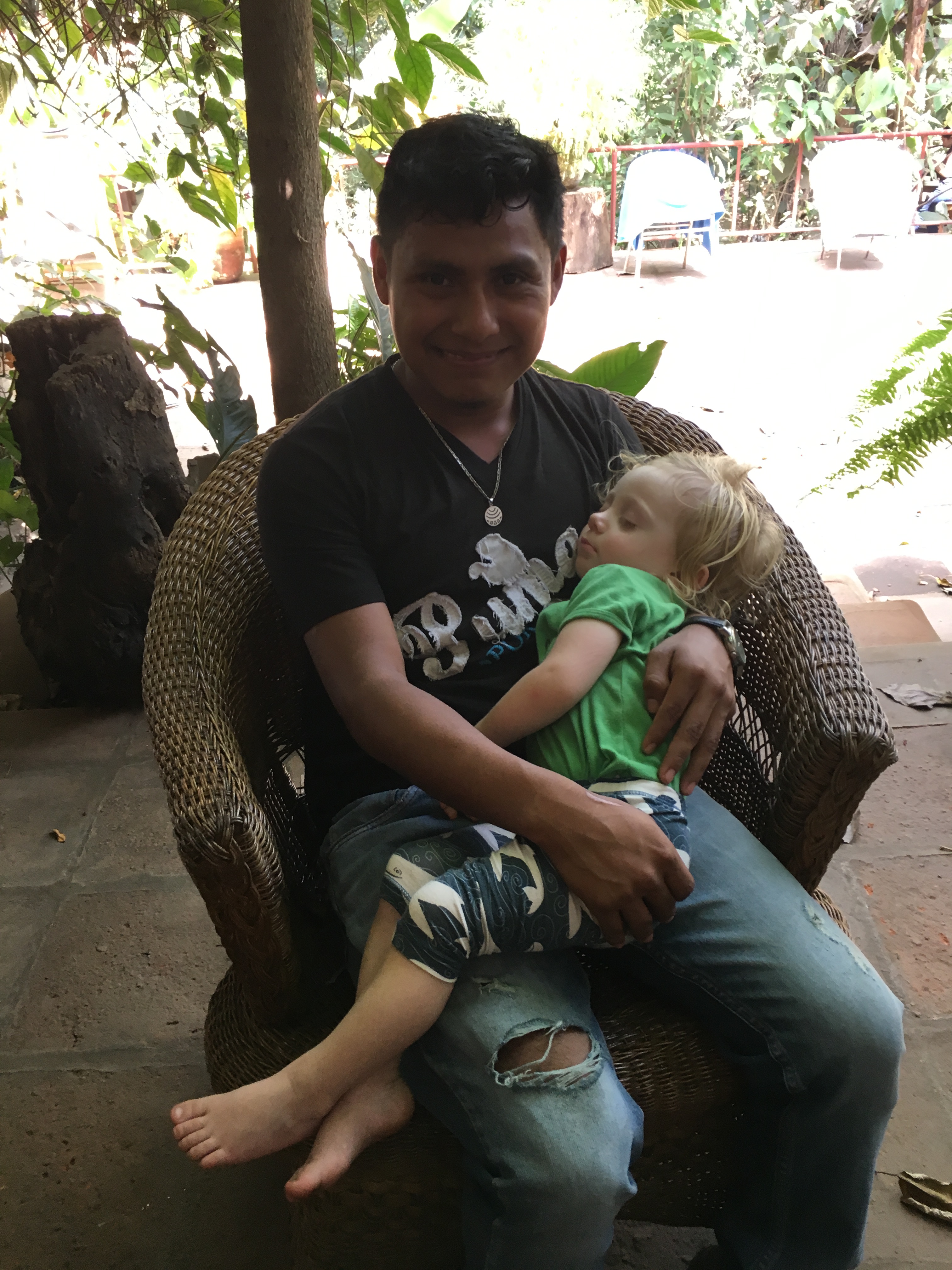 IMG_5808 Published January 30, 2016 at 3024 × 4032 in Hasta la selva viajamos ← Previous Next → Sylvan sleeping in the arms of his teacher, Luis